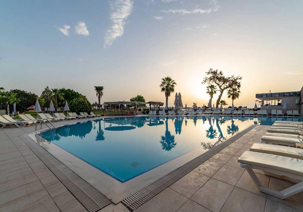 Отель расположен в 1 км от центра города Кемер. Состоит из главного корпуса Beach, расположенного на первой линии от моря и двух 4-х этажных корпусов Resort, расположенных через дорогу. В отеле есть русскоговорящий персонал.