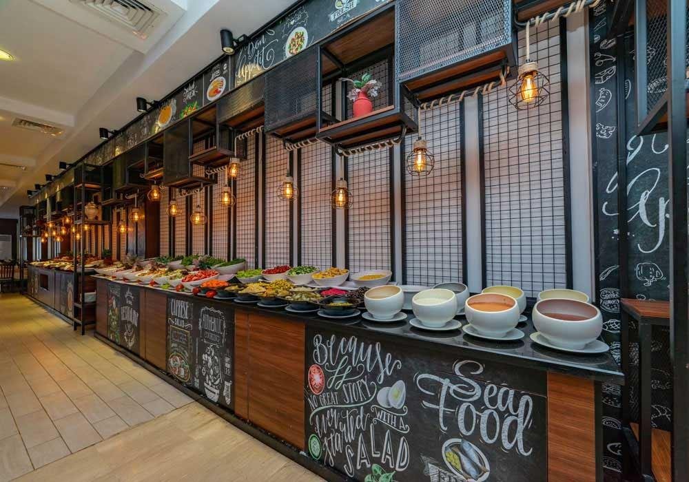 В концепцию входит: завтрак, обед и ужин - шведский стол, поздний завтрак, закуски, сладости и мороженое в определенные часы, местные алкогольные и безалкогольные напитки (10.00 - 23.00).