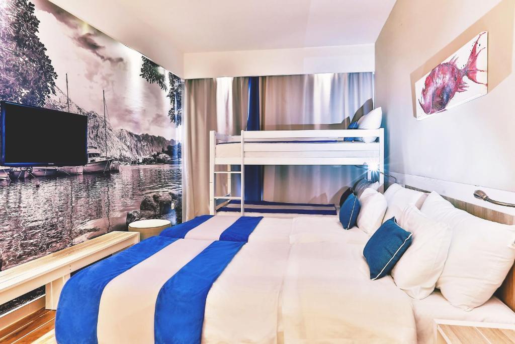Family: 28 м², терраса с видом на горы, французская кровать + двухъярусная кровать, ванная комната с душем. Максимальное размещение – 2 взрослых + 2 детей до 12 лет или 3 взрослых.