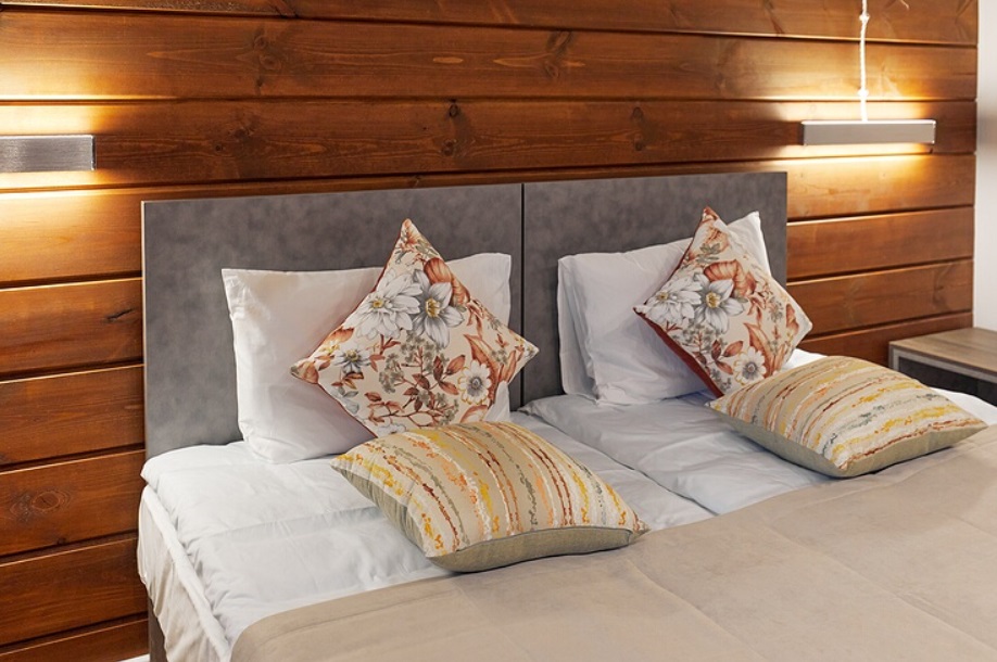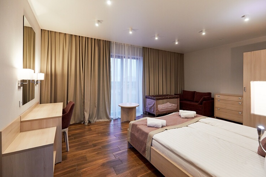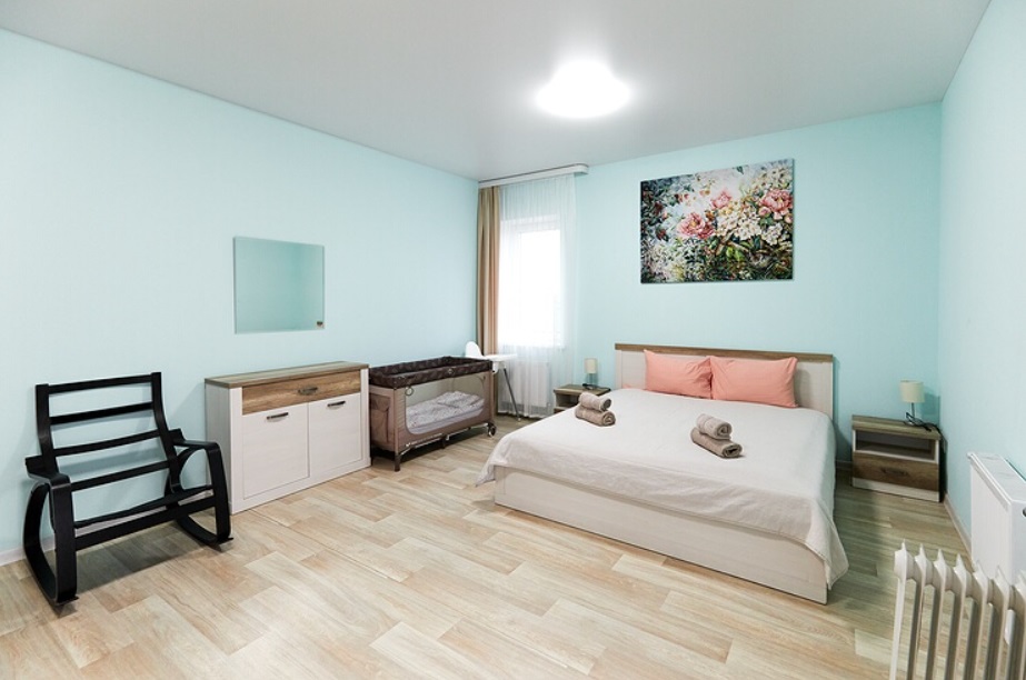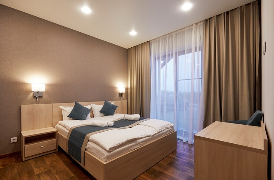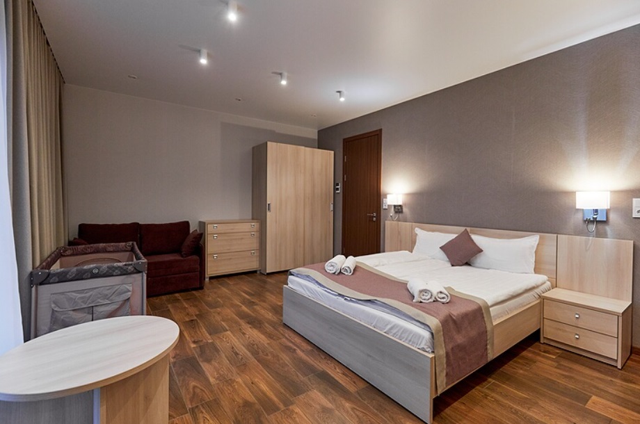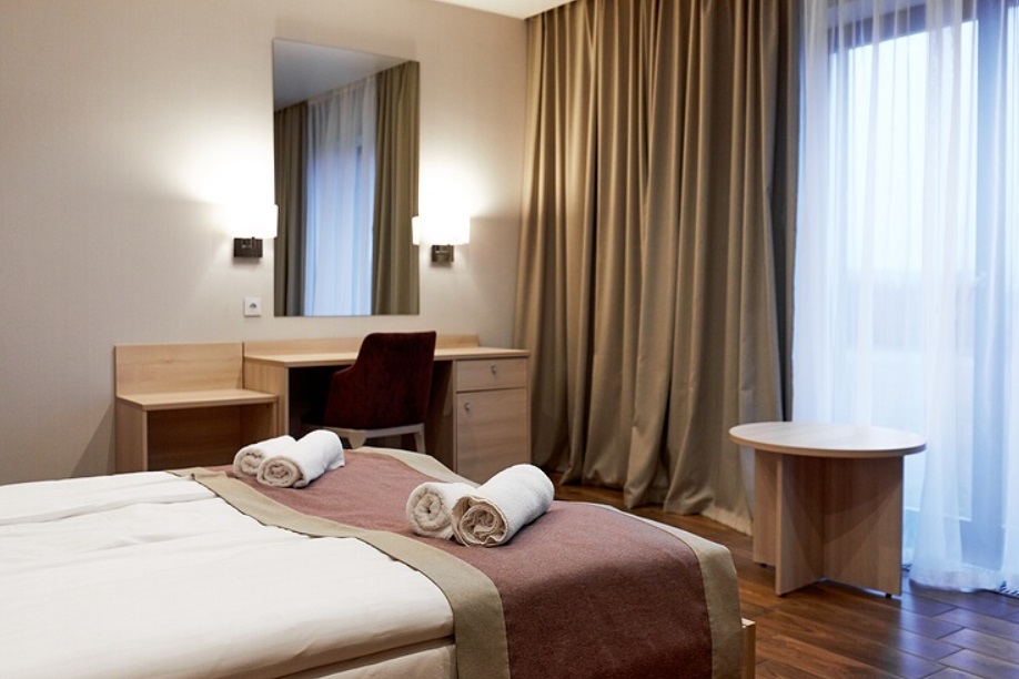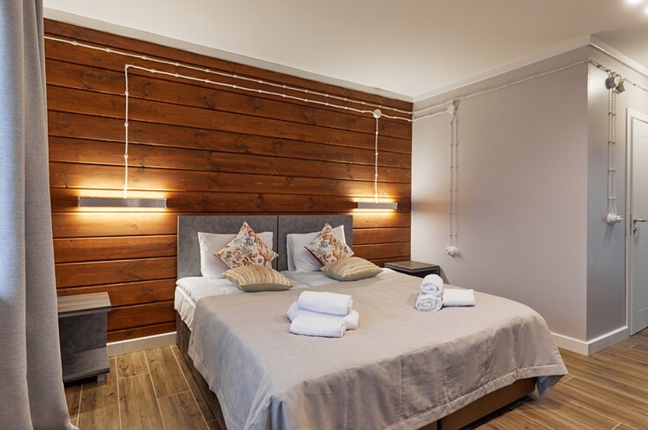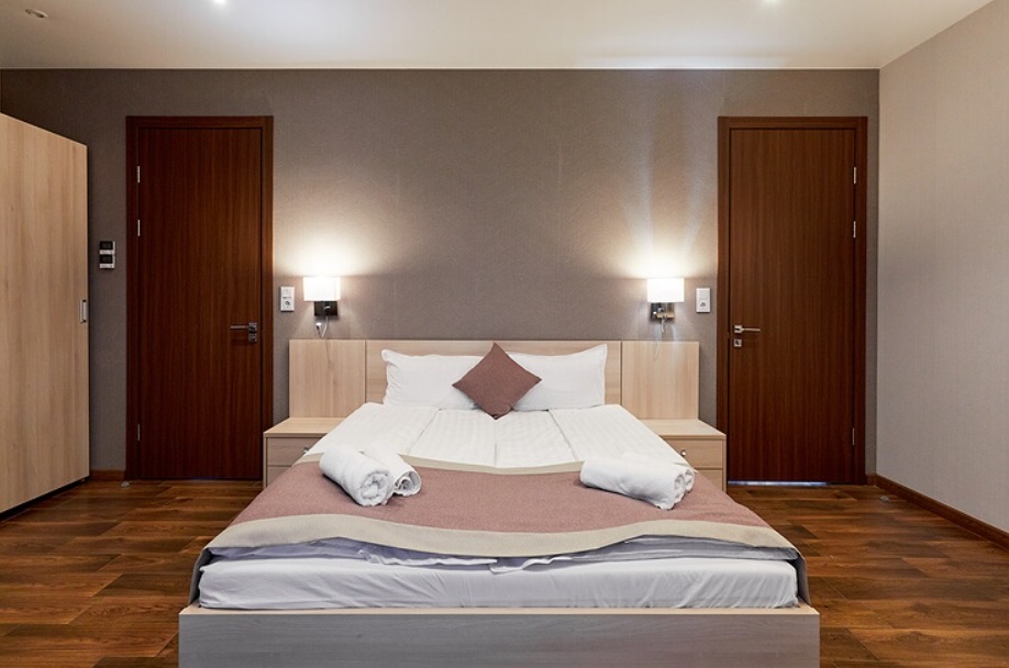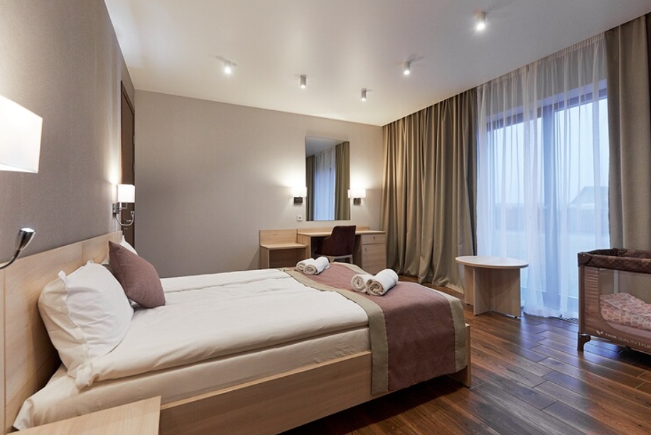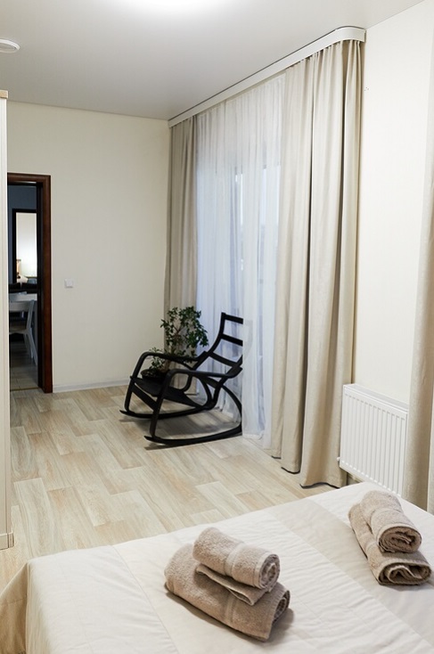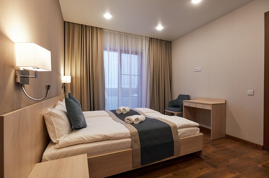 - Номера с двуспальной кроватью или двумя односпальными (в некоторых номерах возможно размещение двое взрослых и ребенок, всего номеров в мини-отеле 6).