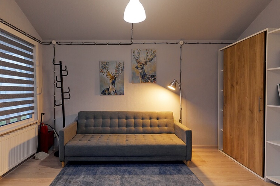 - Прихожая: диван, вешалка, зеркало. Место для парковки автомобиля.