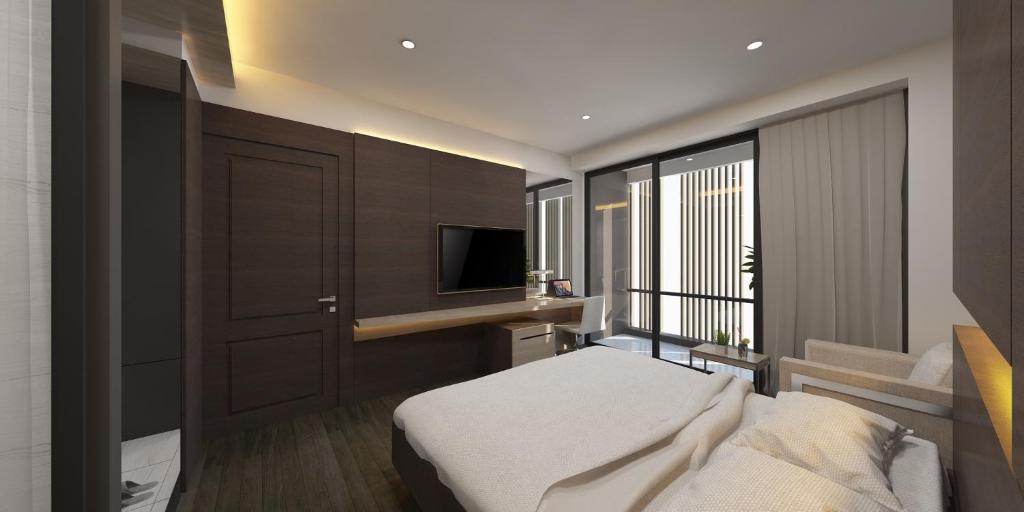 – DELUXE TWIN/ DBL – 30 кв. м., максимальная вместимость: 2 взрослых и 1 ребенок, вид на город