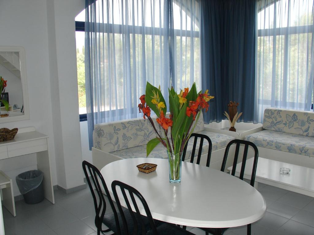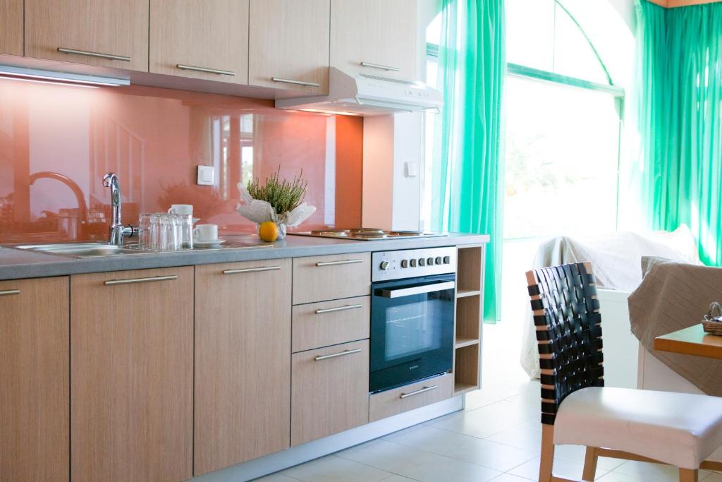 Апартаменты курортного комплекса располагают телевизором и полностью оборудованной кухней с микроволновой печью и обеденной зоной. В некоторых апартаментах также имеется собственная веранда с видом на Ионическое море и сад комплекса.