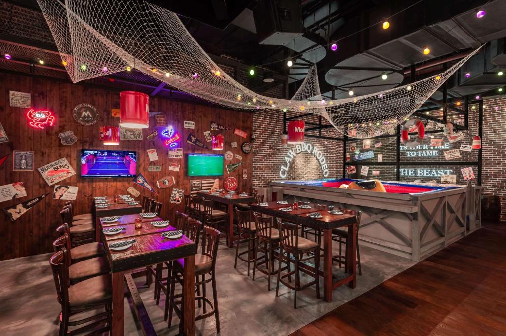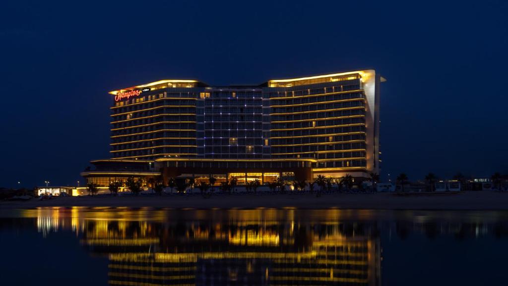 Новый отель, самый большой в сети Hampton. Открыт в 2021 году на острове искусственного архипелага Аль-Марджан, находится на первой береговой линии, имеет частный пляж и пейзажный бассейн с видом на Персидский залив.