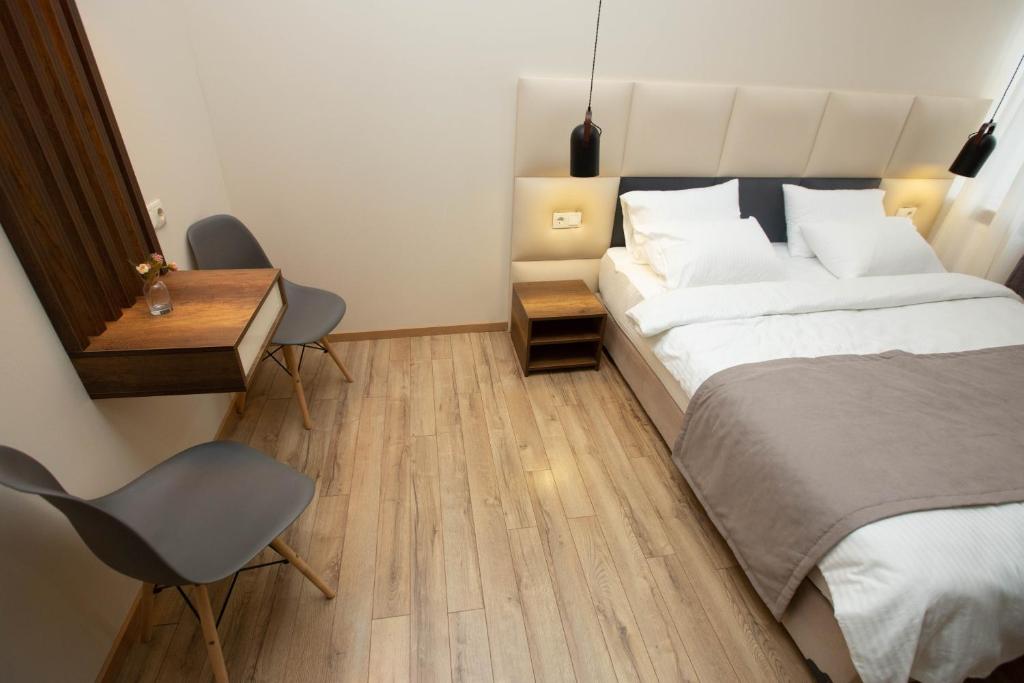 Стандартный двухместный номер с 1 кроватью max. 2 чел.; звукоизолированный двухместный номер с 1 кроватью, мини-баром и кондиционер;