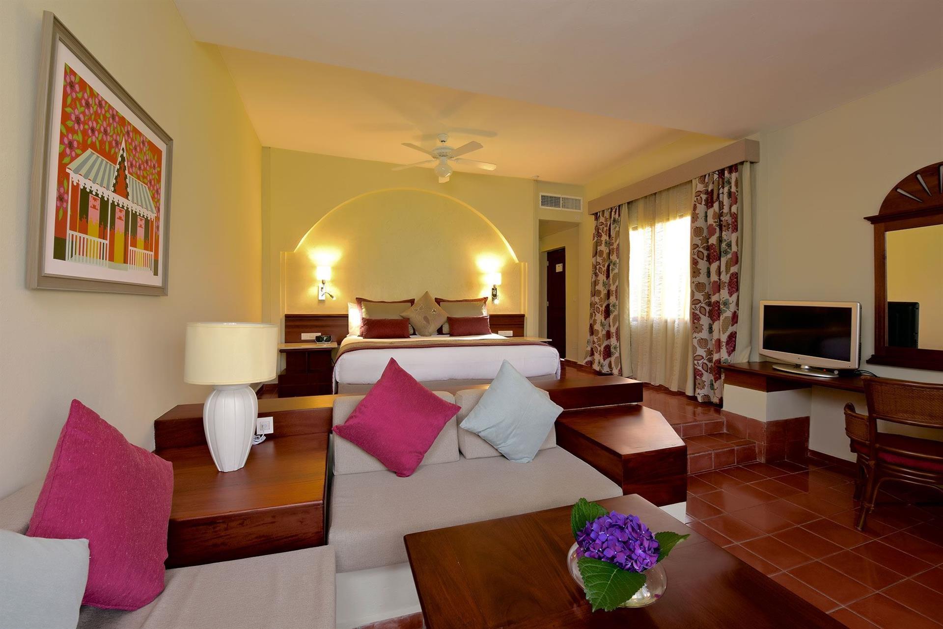 SPA Junior suite (макс. 2 взрослых + 2 детей/3 взрослых + ребёнок) - спальня с кроватью King bed, номера расположены рядом со SPA-центром, цветы в номере, подарочный spa-набор, халат, тапочки, фруктовая вода в мини-баре, ежедневная ароматерапия в номере, романтическая подготовка номере (1 раз за весь период проживания).