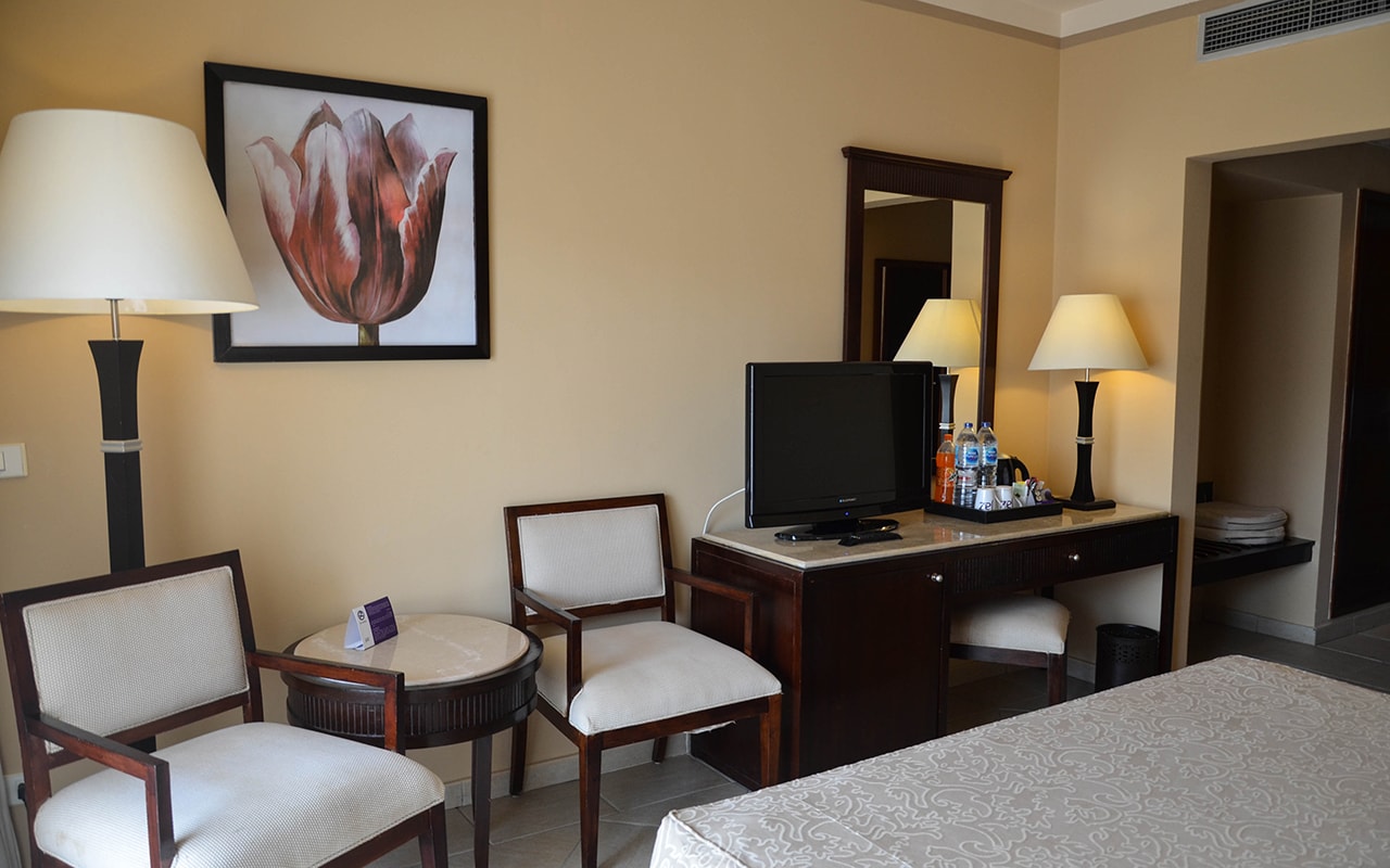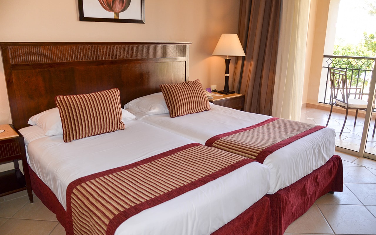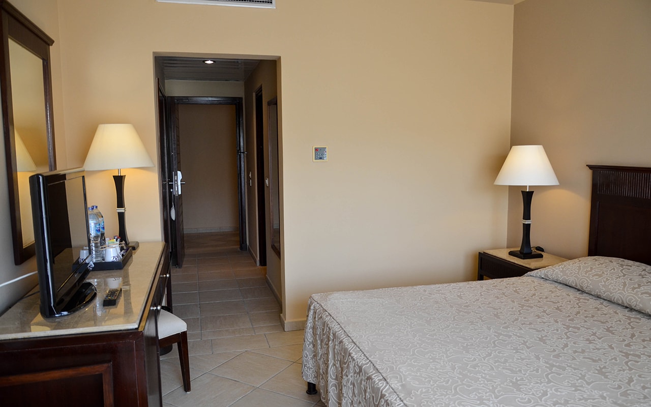 Standard Room — номер с видом на территорию отеля. В номерах king-size bed или twin beds. Дополнительное место — не предусмотрено. Номера расположены в левом крыле основного здания Beach.
