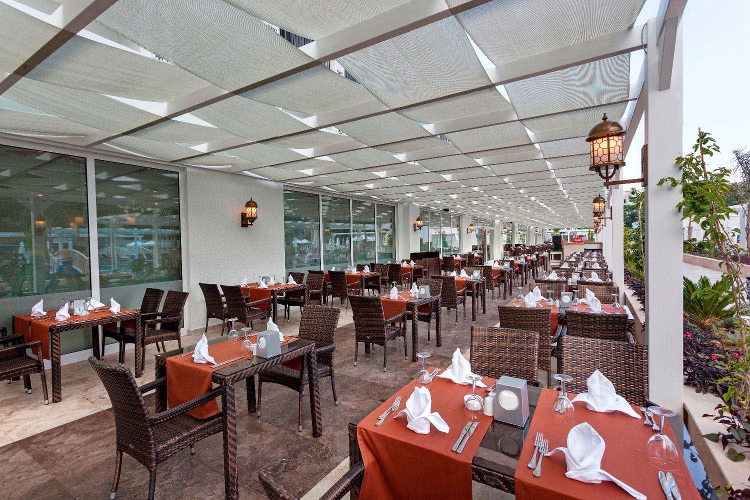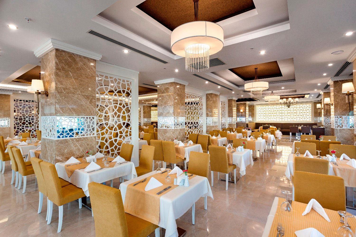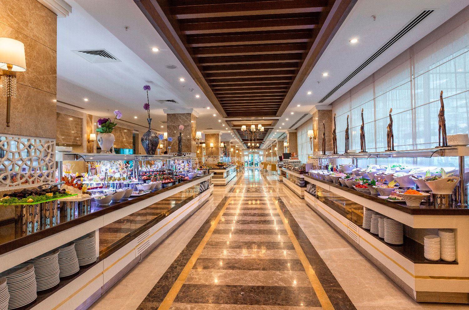 В концепцию входит: завтрак, поздний завтрак, обед, ужин и поздний ужин – шведский стол; закуски, сладости, выпечка, мороженое и гезлеме - в определенные часы, диетический буфет (только обед), местные алкогольные и безалкогольные напитки