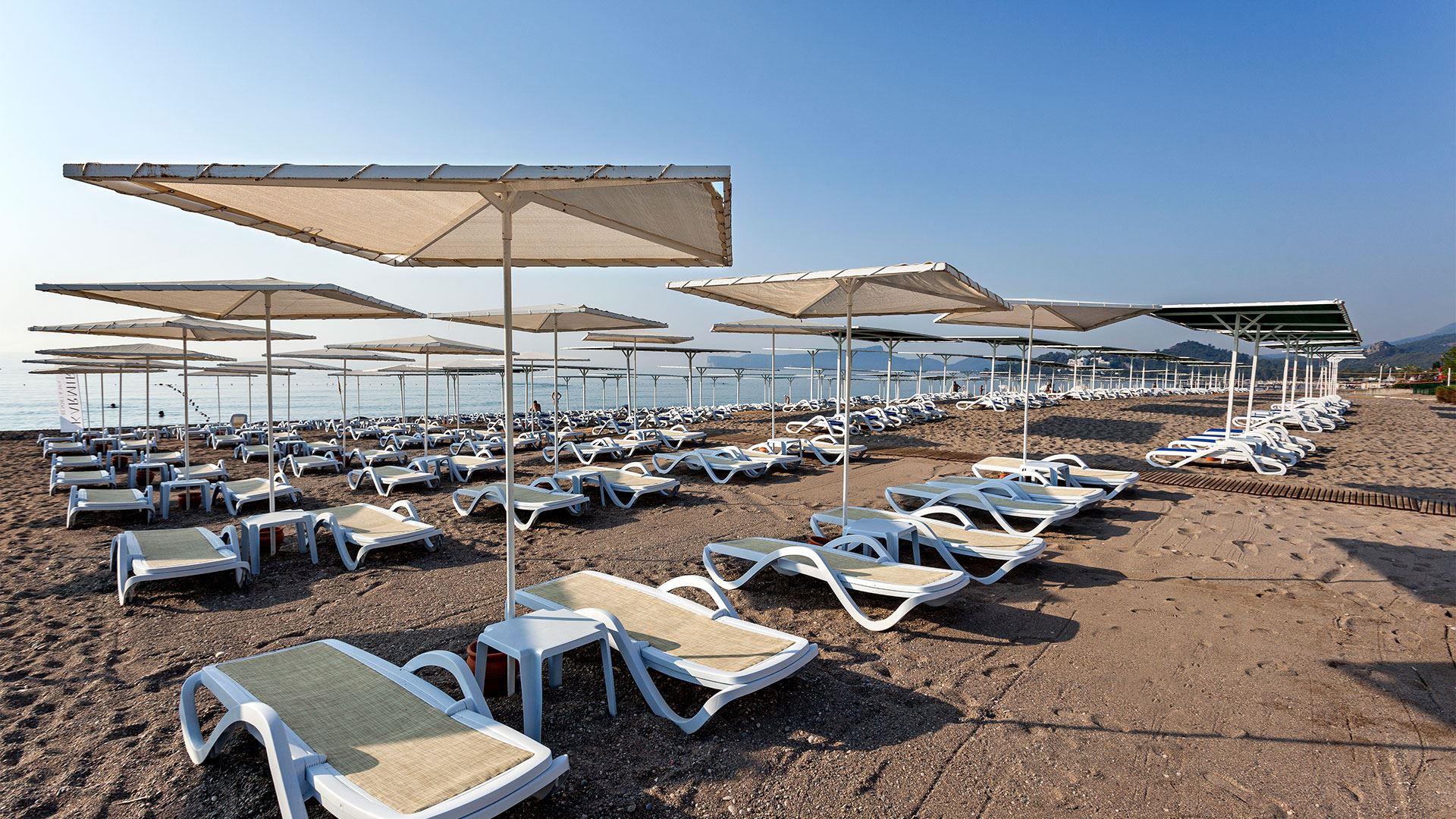 в 40 км от аэропорта г. Анталья, в 8 км от г. Кемер, в поселке Гёйнюк, в 90 м от собственного пляжа (через дорогу).