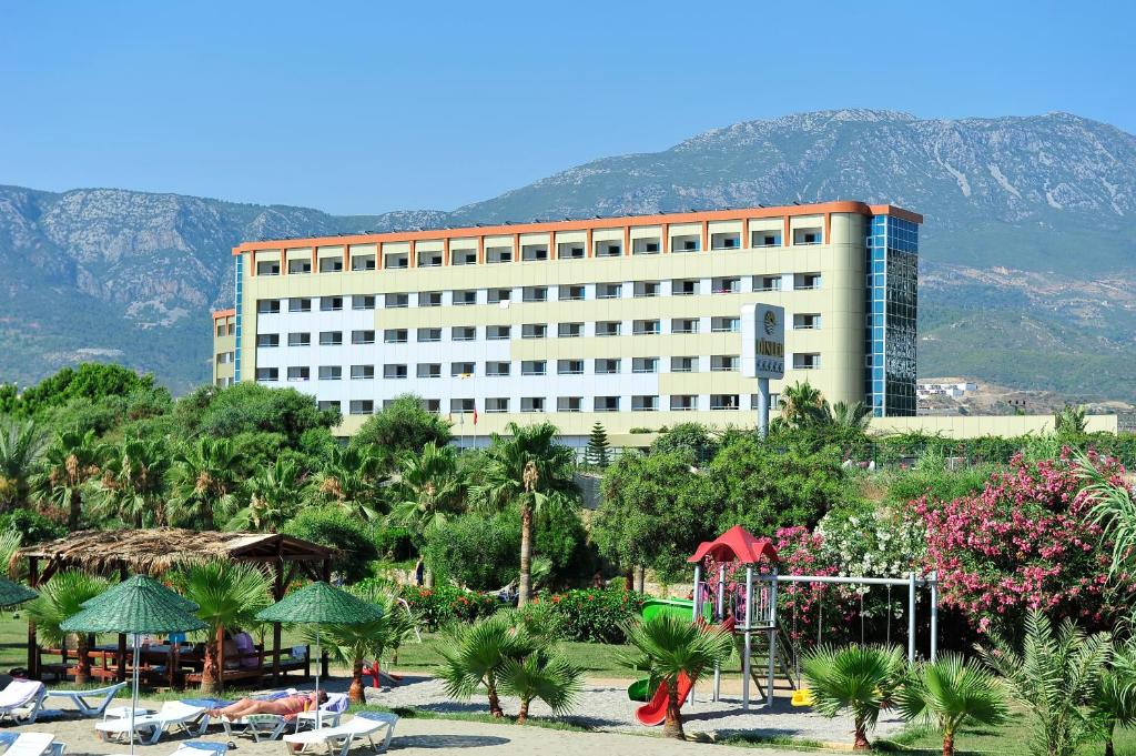 Прекрасный и гостеприимный отель для семейного отдыха. Расположен в 14 км от города Аланья, через дорогу от моря, в 2 км от поселка Махмутлар. Состоит из одного семиэтажного здания.