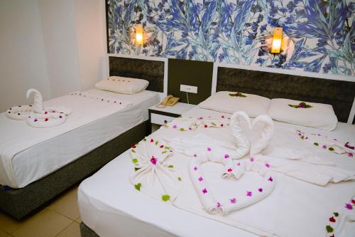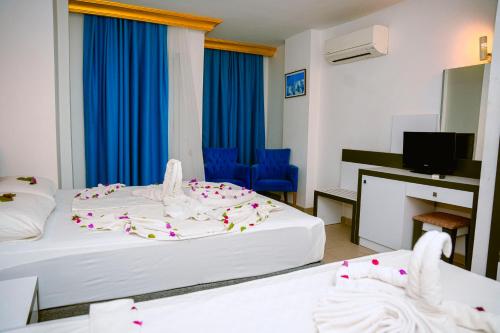Городской отель. Расположен в городе Аланья, на первой береговой линии, в 120 км от аэропорта г. Анталья. В распоряжении гостей сезонный открытый бассейн, сад и общий лаундж.