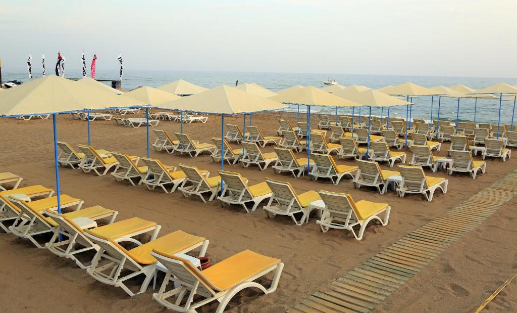 Шезлонги, зонтики, матрацы, полотенца - бесплатно.