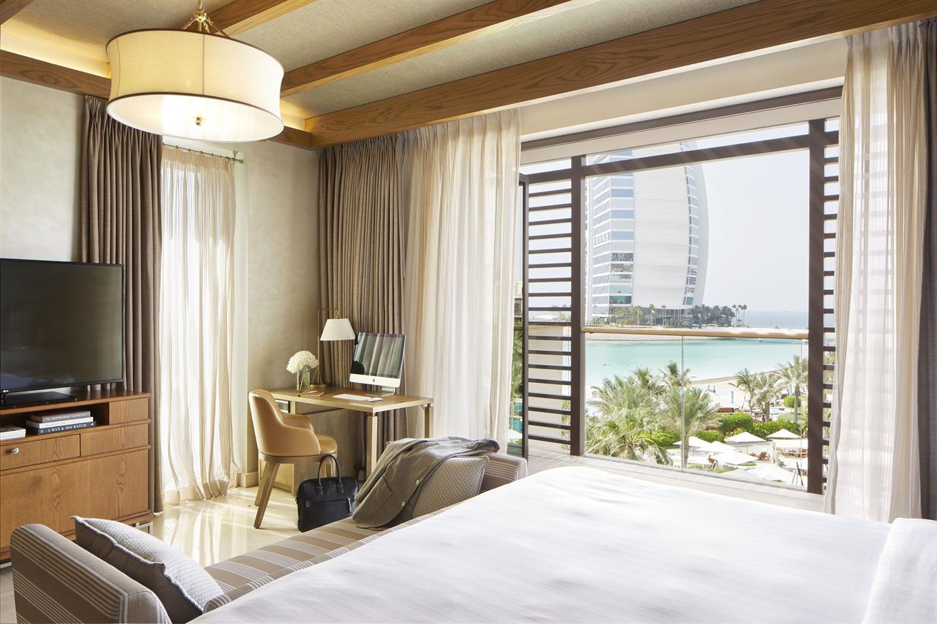 - One Bedroom Burj View Suite (вид на Burj Al Arab или море, гостиная и спальня, кровать king-size, терраса, макс. 3+1 чел., 135 м2, клубные привилегии)