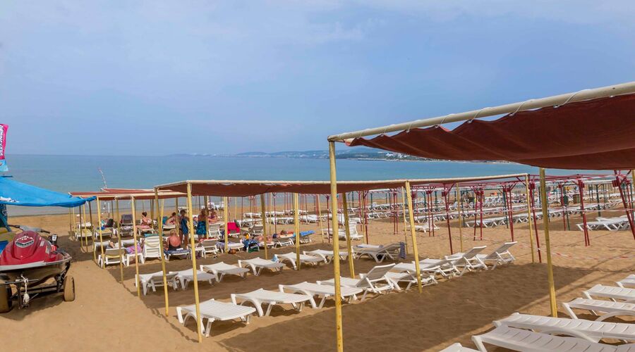 Собственный песчаный пляж находится в 350 м от отеля, через дорогу.