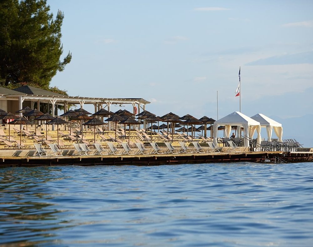 Бассейн с пресной водой, каскадный бассейн с морской водой, джакузи и частный пляж, защищенный сетью Natura и награжденный Голубым Флагом, оснащены шезлонгами и зонтиками, приглашая гостей насладиться освежающим купанием с видом на Ионическое море. Маленькие гости отеля могут плескаться в детском водном парке или бассейне для малышей, в зависимости от возраста, наслаждаться вкуснейшими блюдами из детского меню, посещать детский клуб, веселиться на игровой площадке среди садов, плодотворно проводить время со своей семьей, участвуя в ряде спортивных мероприятий и водных видах спорта, или посещать развлекательные мероприятия, организованные курортом.