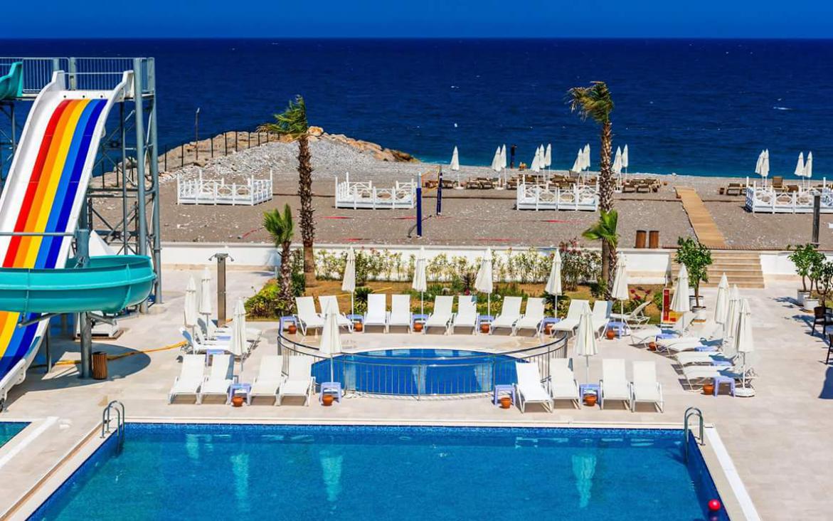 Отель расположен в поселке Бельдиби, в 13 км от города Кемер, на первой береговой линии. Представляет собой одно 5-ти этажное здание (1 лифт). В гостинице можно забронировать семейные номера.