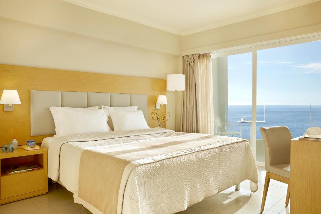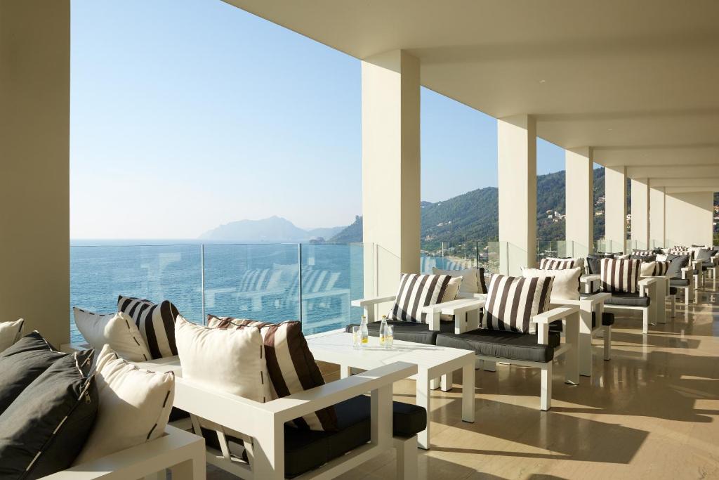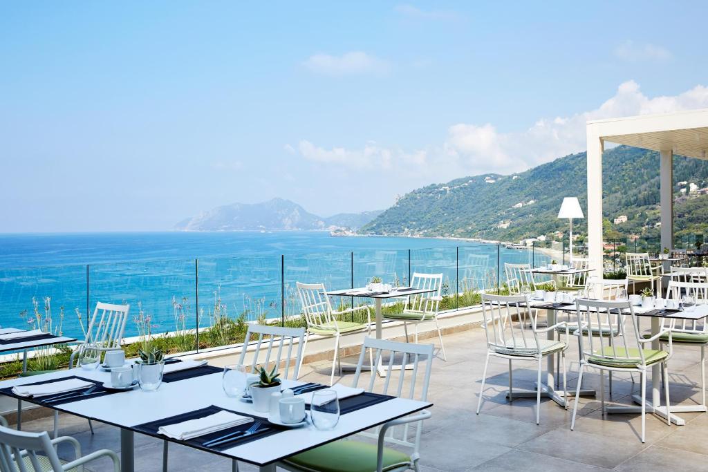 К услугам гостей 5 ресторанов, 6 баров и 2 больших открытых плавательных бассейна, а также крытый бассейн с подогревом. Все номера выходят на балкон с видом на Ионическое море или сад. Бары работают в лобби, на террасе на крыше, на пляже и у бассейна. В спа-центре предлагается широкий спектр услуг, от тренажеров на свободных весах до массажа горячими камнями.