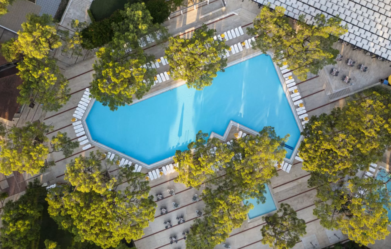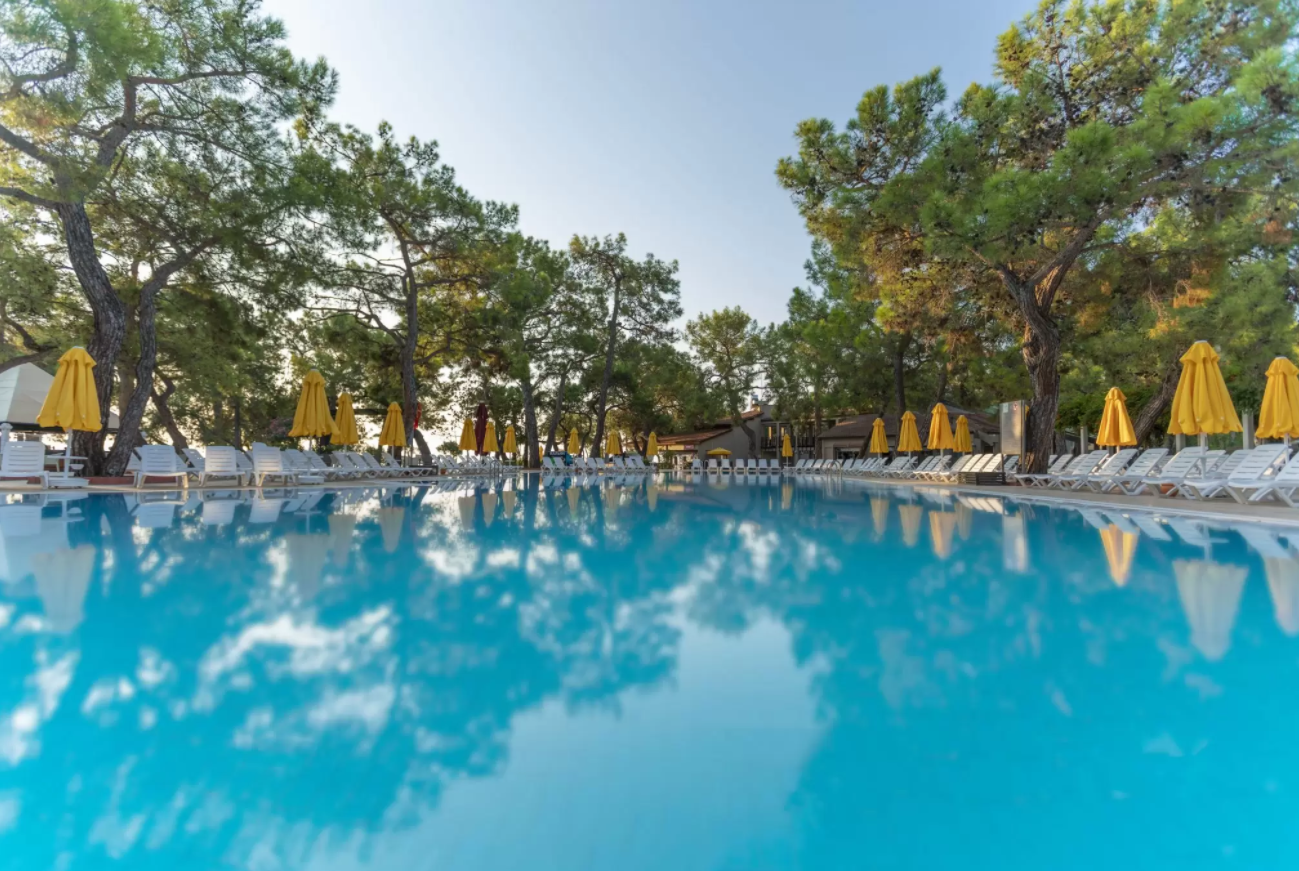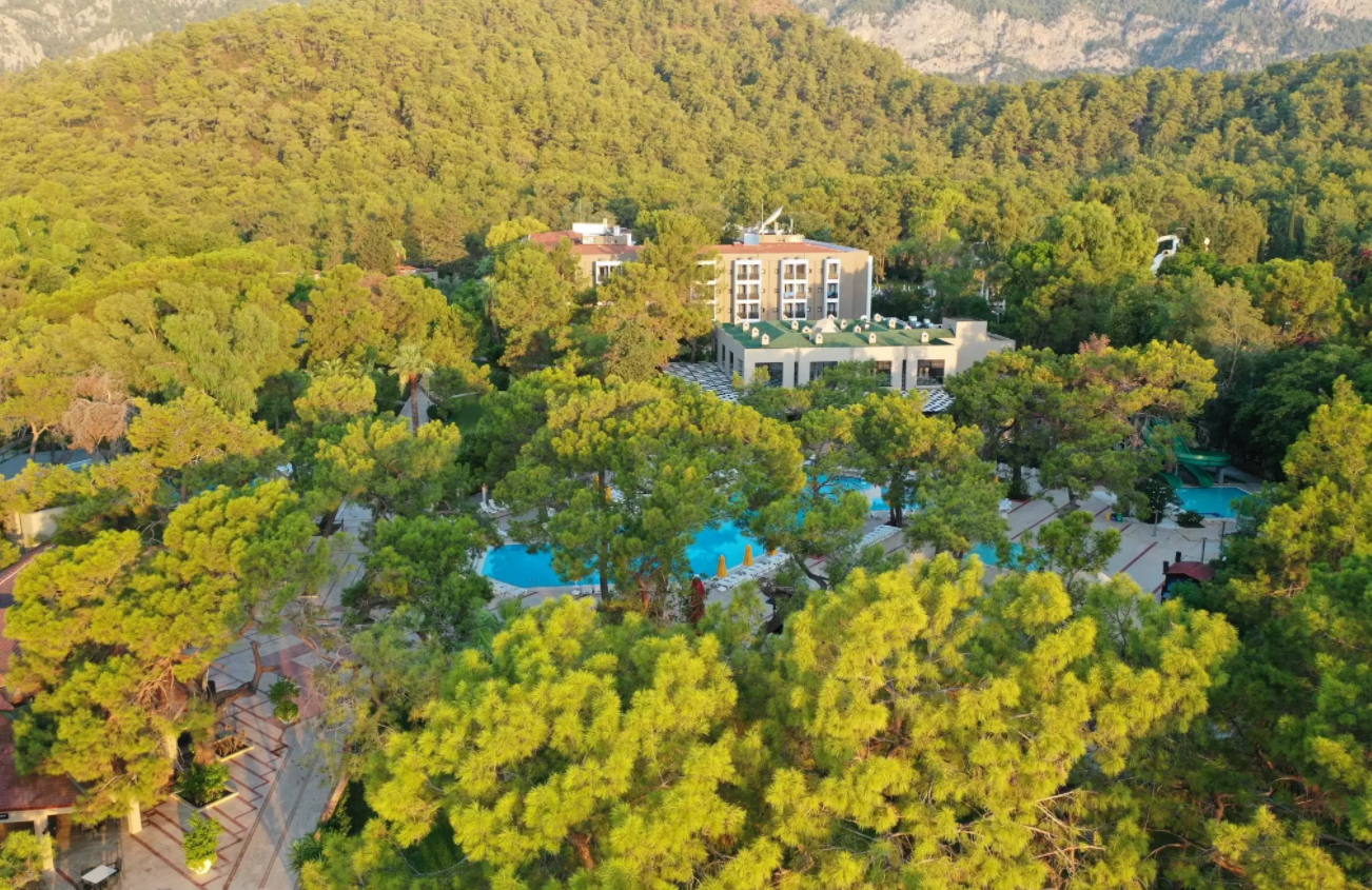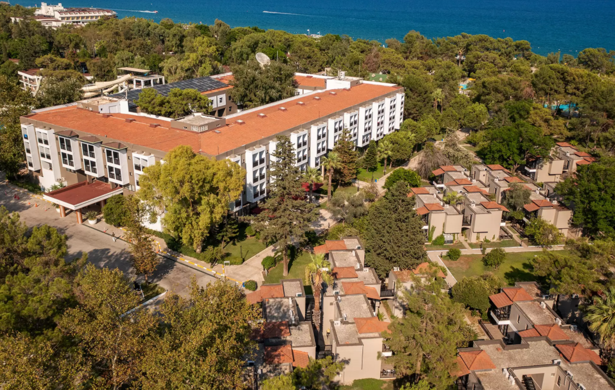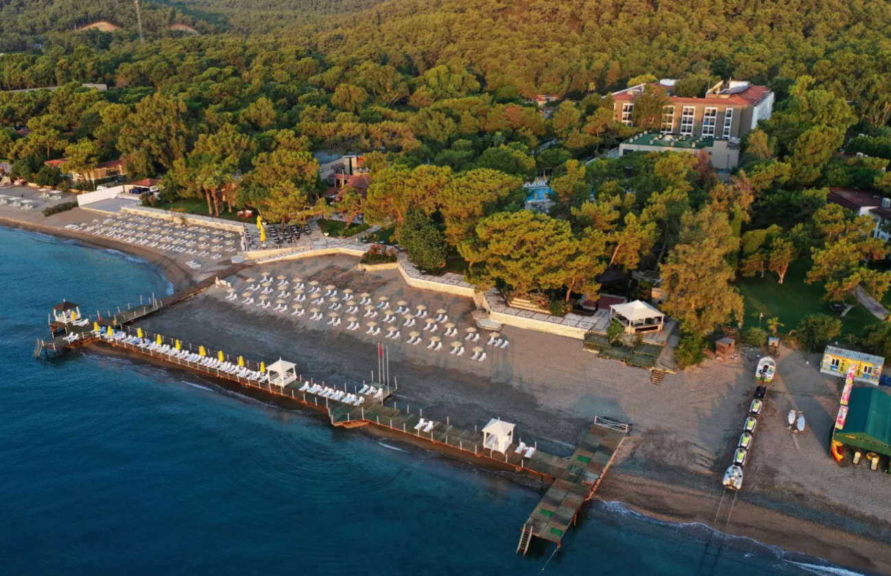 Отель расположен в 6 км от города Кемер, в поселке Гёйнюк, на первой береговой линии. Состоит из одного основного 5-ти этажного здания (4 лифта) и комплекса 2-х этажных бунгало. Отель подойдёт для семейного отдыха.