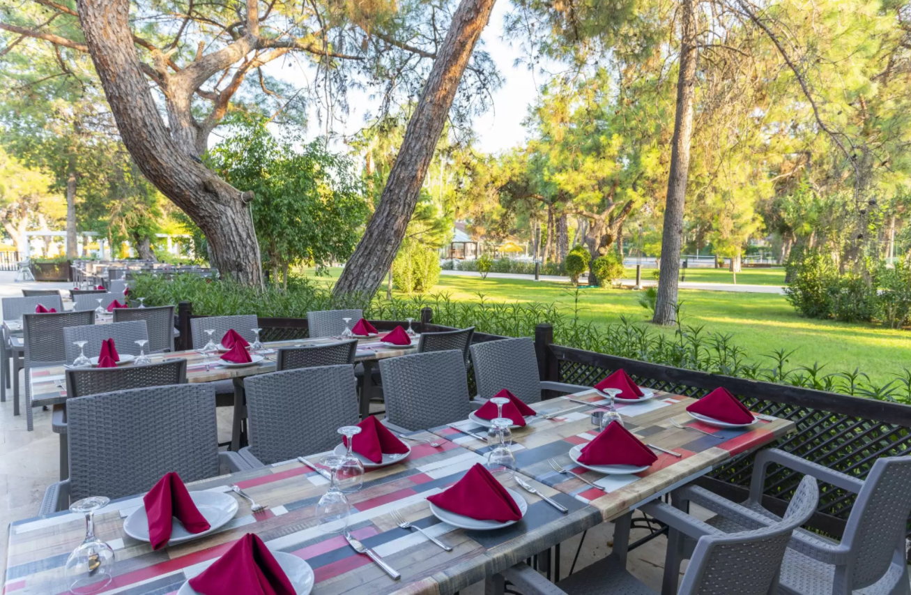 В концепцию входит: завтрак, поздний завтрак, обед, ужин - шведский стол, закуски, гезлеме, мороженое, выпечка и десерты - в определённые часы, диетический и вегетарианский буфет, ночной снэк, местные и некоторые импортные алкогольные и безалкогольные напитки.