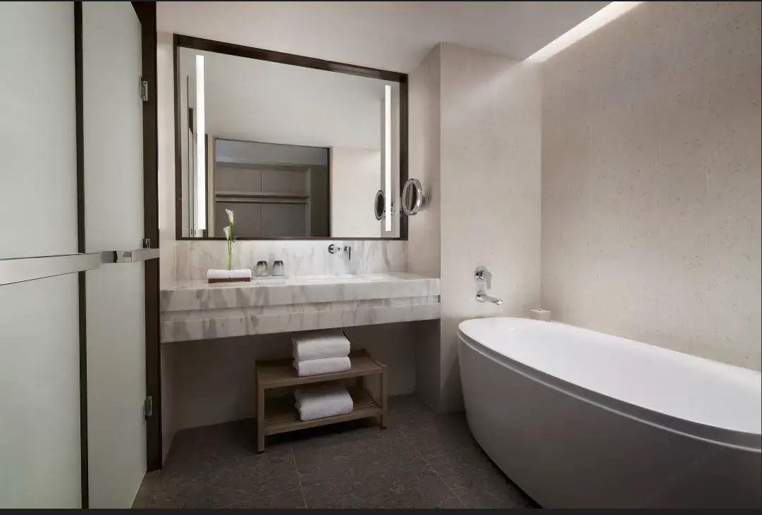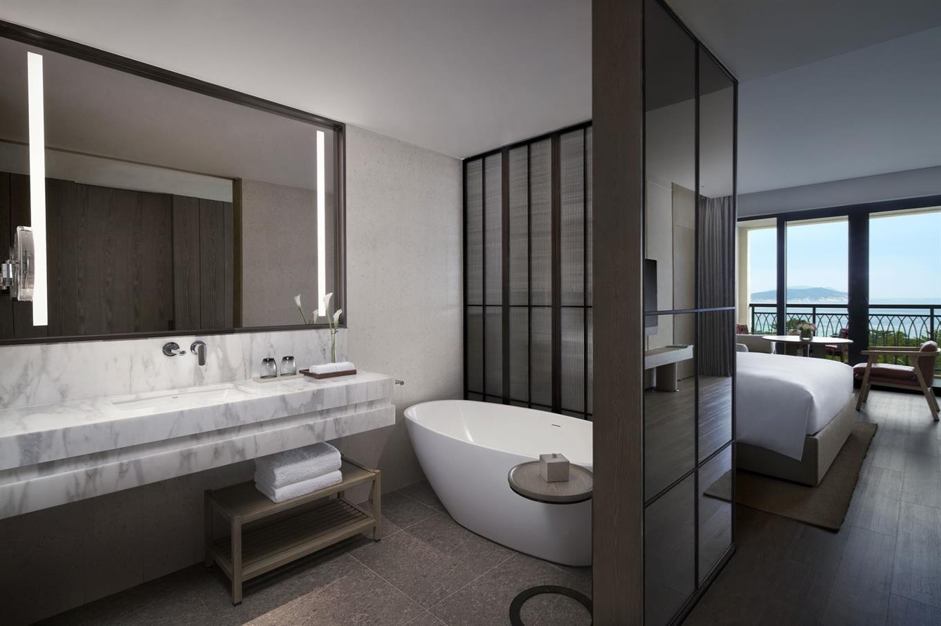 - Deluxe Ocean View Suite - на 4-8 этажах, 92 кв. м, спальня, кровать King-size, гостиная, межкомнатная дверь, ванная комната, балкон, вид на море.