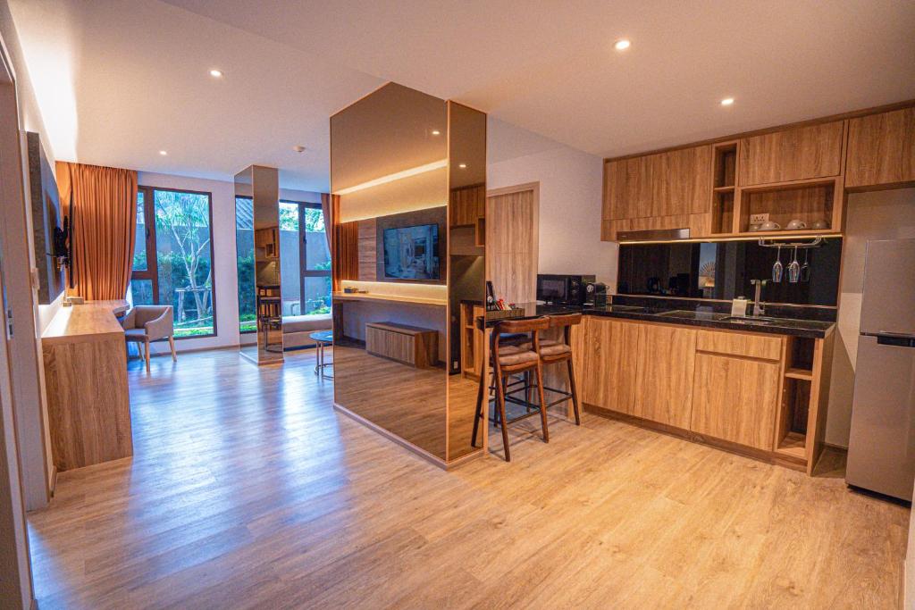 - One Bedroom Suite - 53 м², макс. 2+2 чел. | в спальне двуспальная кровать, гостиная с диваном, мини-кухня, ванная комната.
