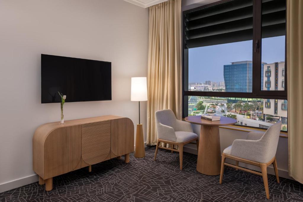 - King Family Suite Plaza View Theme Park Access - 56 кв.м., 1 кровать King size, доп. место Sofa Bed 200 см, макс. размещение 4 чел.