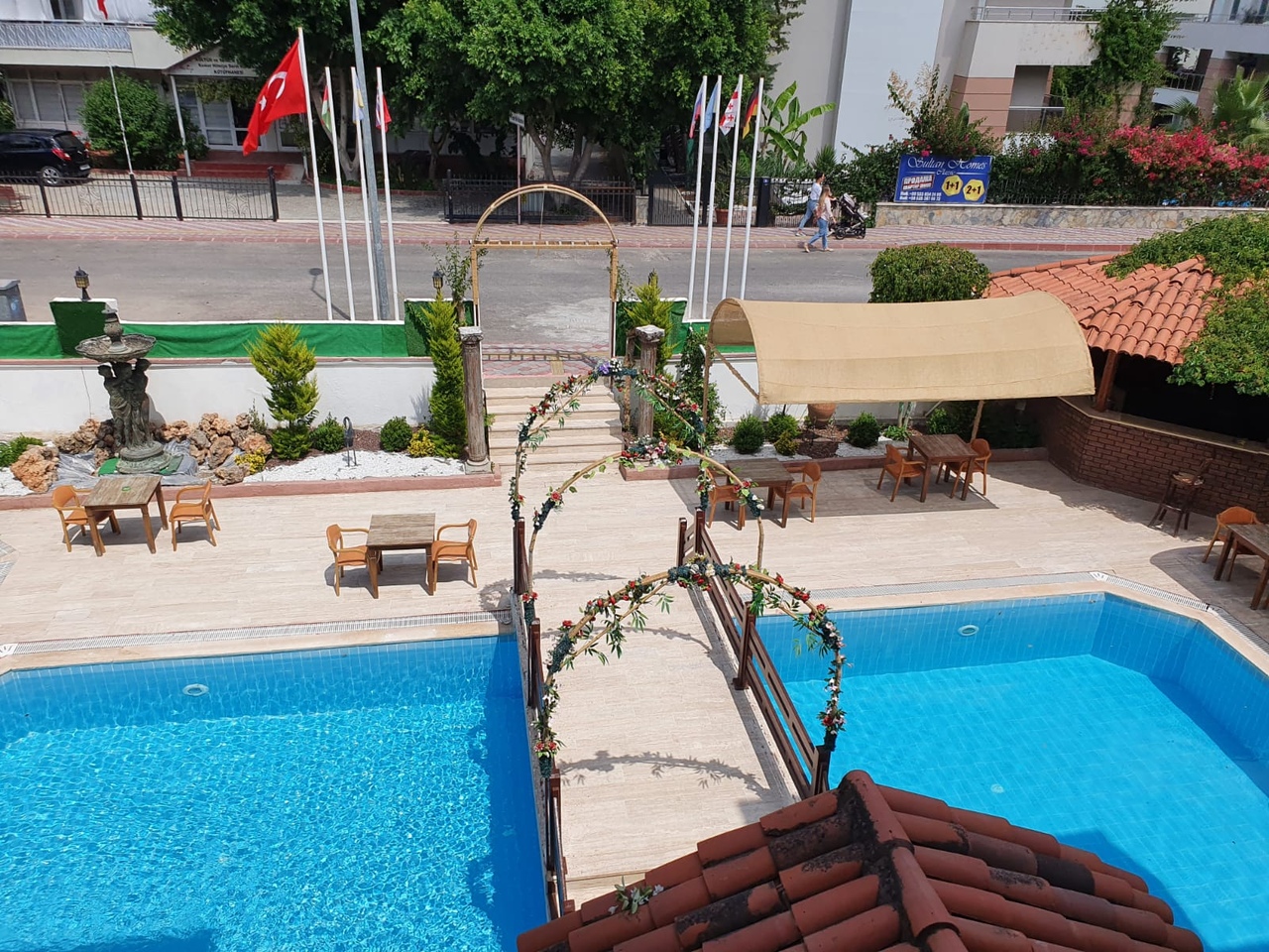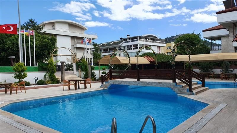 Отель находится рядом с центром г. Кемер, в 800 м от галечного пляжа и в 45 км от аэропорта г. Анталья.