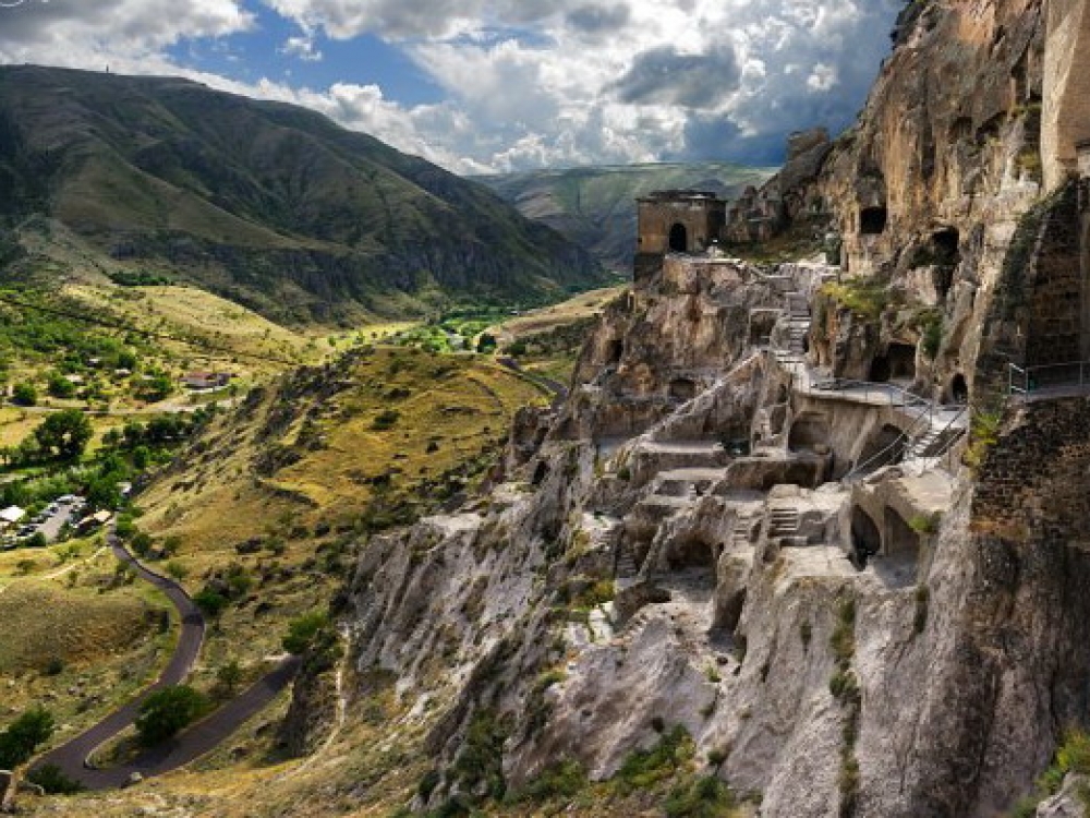 И последним пунктом нас ждет скальный город Вардзия. Вардзия находится в 18 км от Ахалкалаки, в непосредственной близости от границы с Турцией. Город был создан в XII - XIII веках во время правления Георгия III и его дочери царицы Тамары для защиты южных рубежей Грузии. Вардзия – это не просто хаотично вырытые в отвесной скале пещерные помещения. Это настоящий многоэтажный (!) комплекс с улицами, тоннелями и лестницами, ведущими мимо монастырей, храмов, крепостей, бань, библиотек, жилых построек и пр. Всего свыше 600 соединенных ходами помещений, которые простирались вдоль горы в длину на 800 метров , в глубину горы до 50 метров и в высоту на восемь этажей.